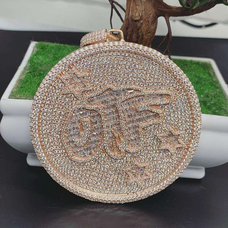 Iced Out OTF colgante oro rosa personalizado redondo Bling collar con piedras Baguette lujo Hip Hop joyería para hombres y mujeres