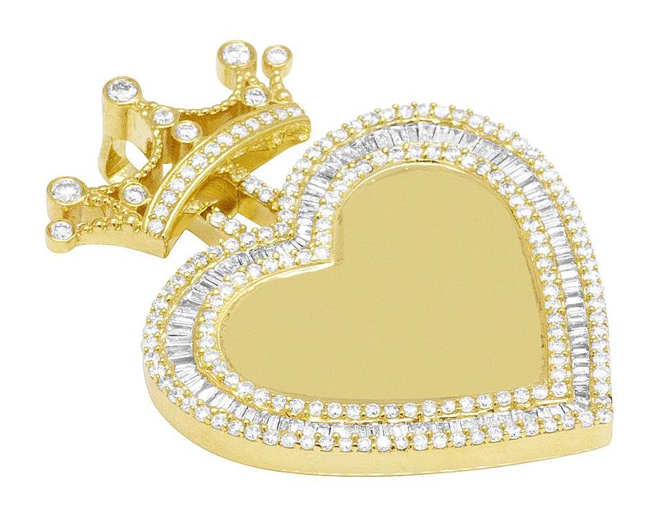 Iced Out Picture Memory Custom Moissanite Round Baguette Diamond Memory Crown Heart Photo Picture Colgante para joyería de rapero