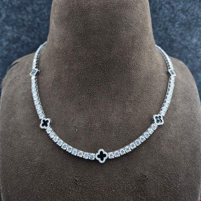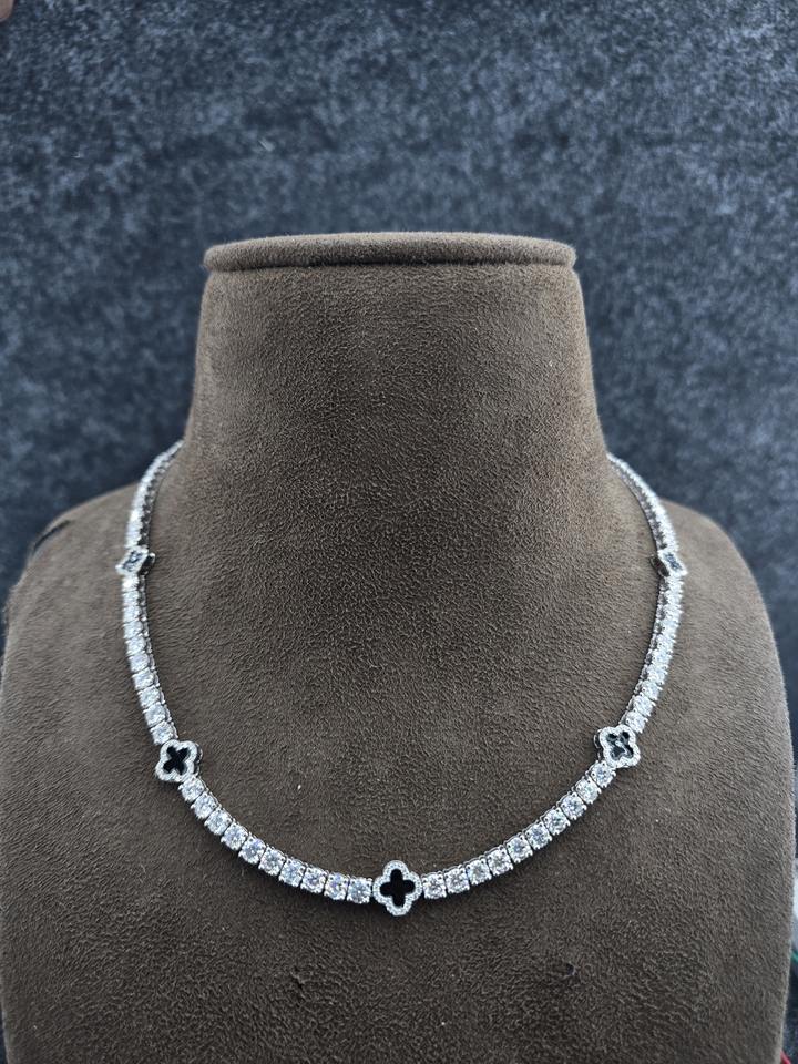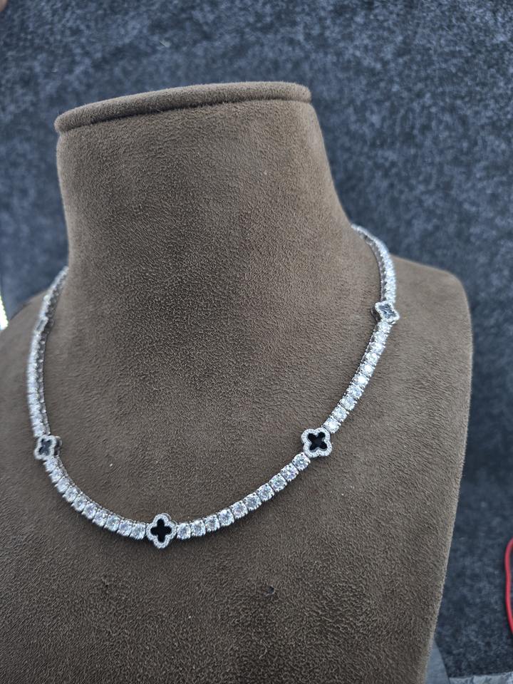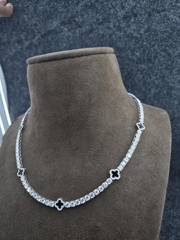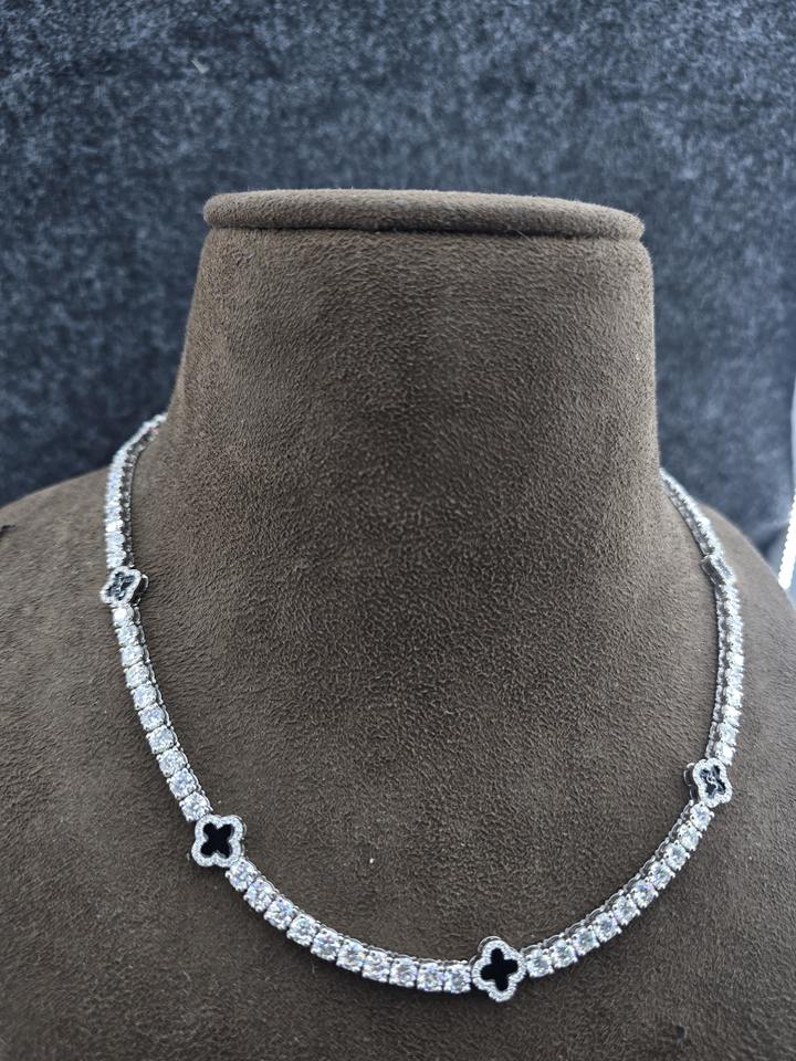 Collar de tenis estilo rapero Iced Out chapado en oro rosa de plata de ley 925 con moissanita VVS y diseño de trébol 3mm/4mm