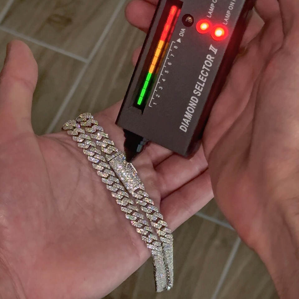 Cadena Cubana Chapada en Rodio con Incrustaciones de Moissanita VVS, Plata 925, Joyería de Lujo Estilo Hip Hop para Hombres y Mujeres