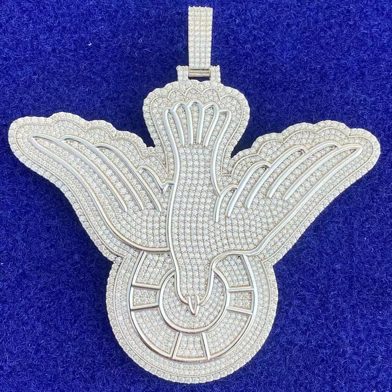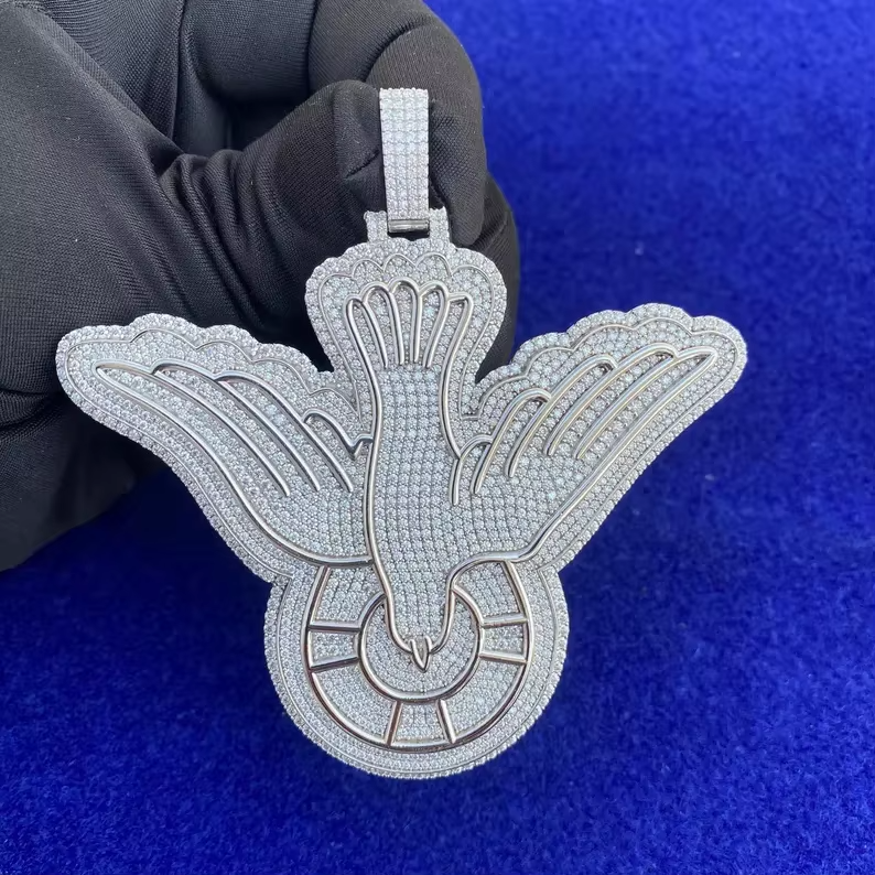 Colgante de paloma bañado en rodio con incrustaciones de moissanita, joyería llamativa personalizada estilo hip hop para hombre
