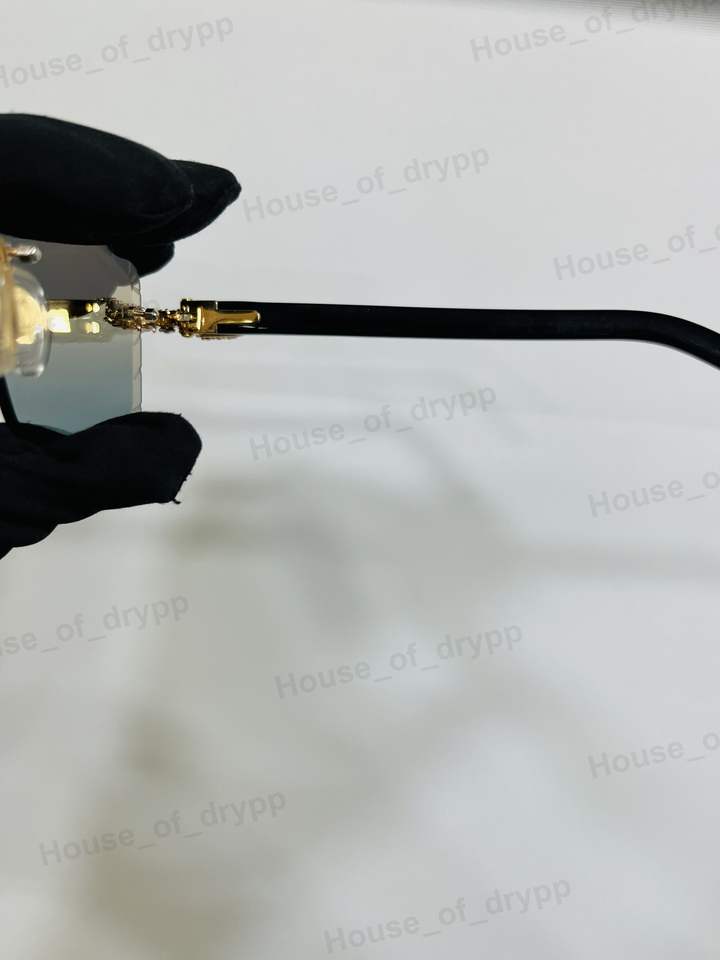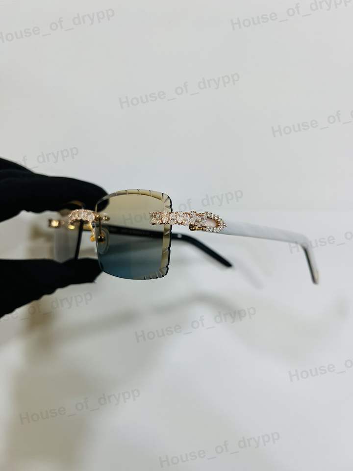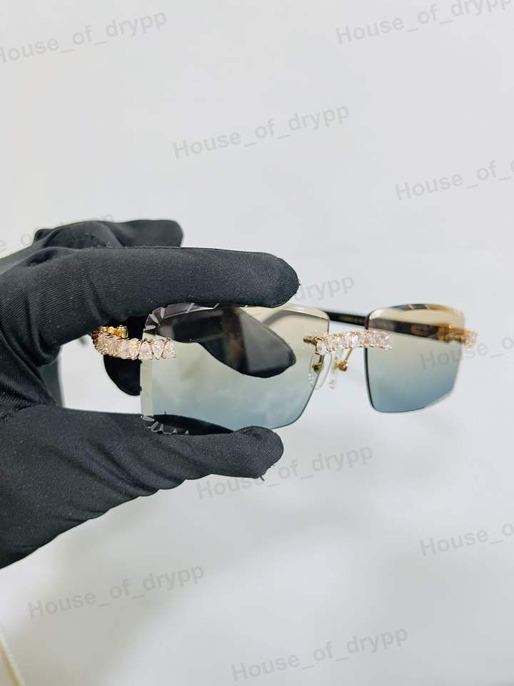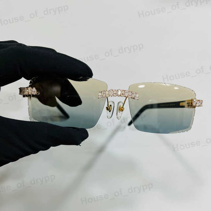 Gafas de sol sin montura con incrustaciones de diamantes, montura plateada con diamantes de moissanita VVS de corte pera, estilo hip hop de lujo para unisex.