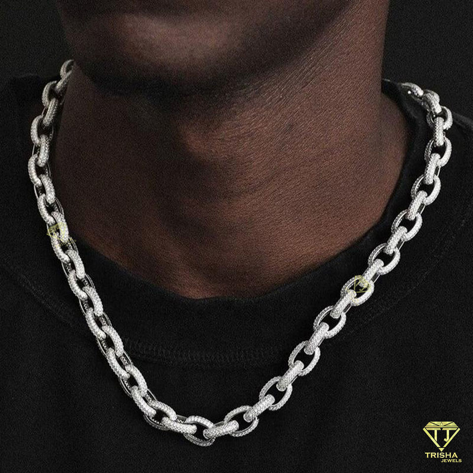 Iced Out Rolo Chain Moissanite Silver 925 Chain Heavy Chunky Totalmente Iced Rolo Chain para hombres Hip Hop Jewelry para rapero