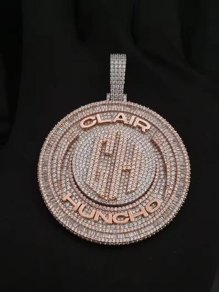 Colgante con Bisel Redondo Personalizado con Incrustaciones de Diamantes, Chapado en Rodio, Plata, Joyería Hip Hop para Hombre y Mujer