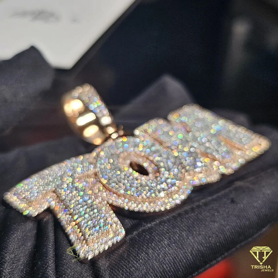 Colgante con logotipo de letras redondas Iced Out con diamantes cultivados en laboratorio VVS en joyería de Hip Hop de Plata de Ley 925