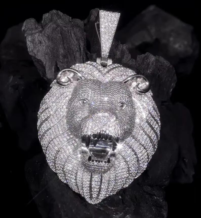 Colgante Unisex Iced Out de Plata 925 Bañada en Plata con Diseño de Moissanita Engastada en Bisel y Piedras Brillantes, Estilo Hip Hop para Fiesta, HP-74