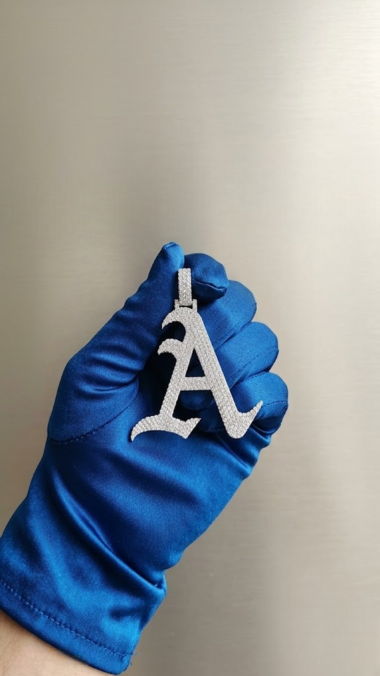 Colgante de Lujo con Letra Inicial 'A' en Plata con Incrustaciones de Moissanita VVS, Bañado en Rodio, Joyería Hip Hop Unisex