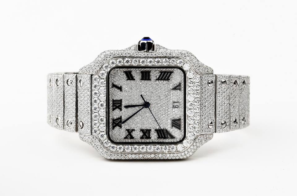 Aplicación:Reloj de moissanita con trabajo hecho a mano