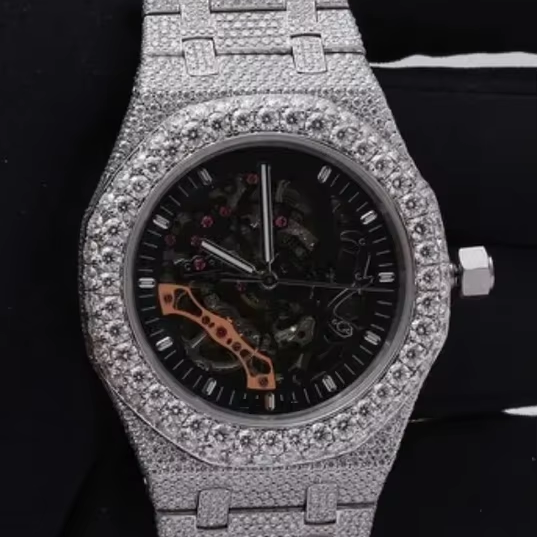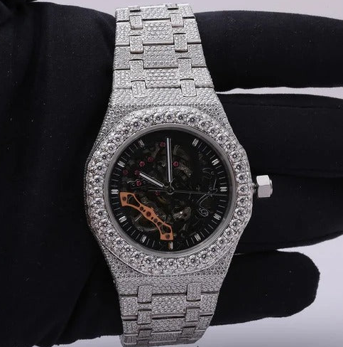 Iced Out Skeleton Personalizado Moissanite Diamond Rectángulo Mecánico Acero inoxidable ETA Reloj de lujo