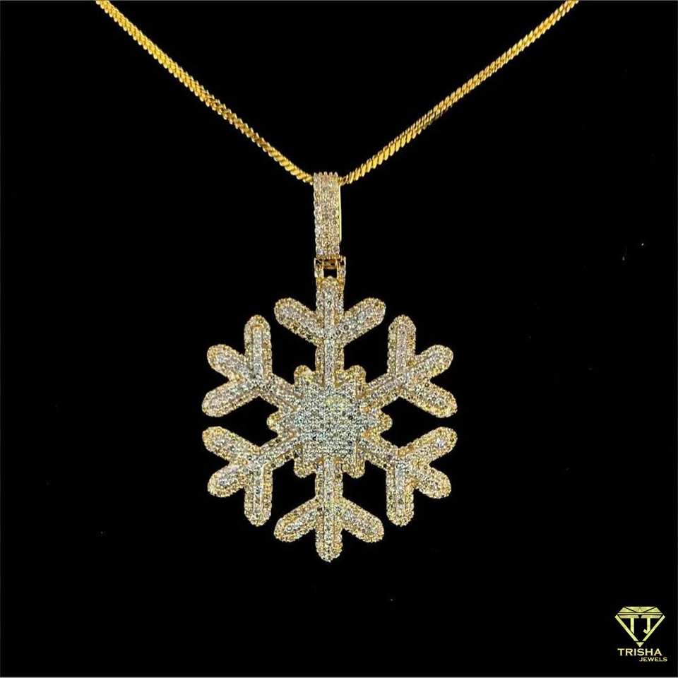 Colgante de copo de nieve helado hecho en plata 925 adornado con diamantes de moissanita brillante para el regalo de cumpleaños y Navidad