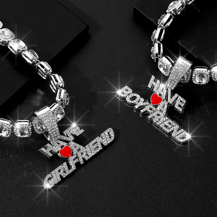 Iced Out Square Diamond Cadena cubana con aleación y Full Bling Rhinestone Novio Novia Colgante Gargantilla Collar
