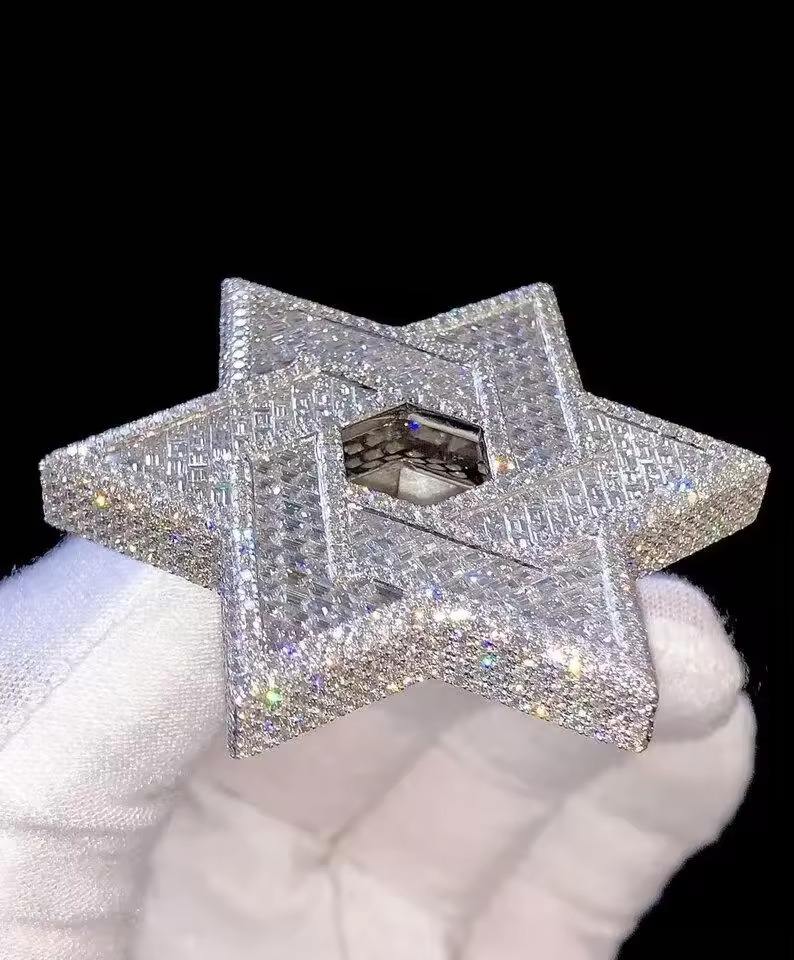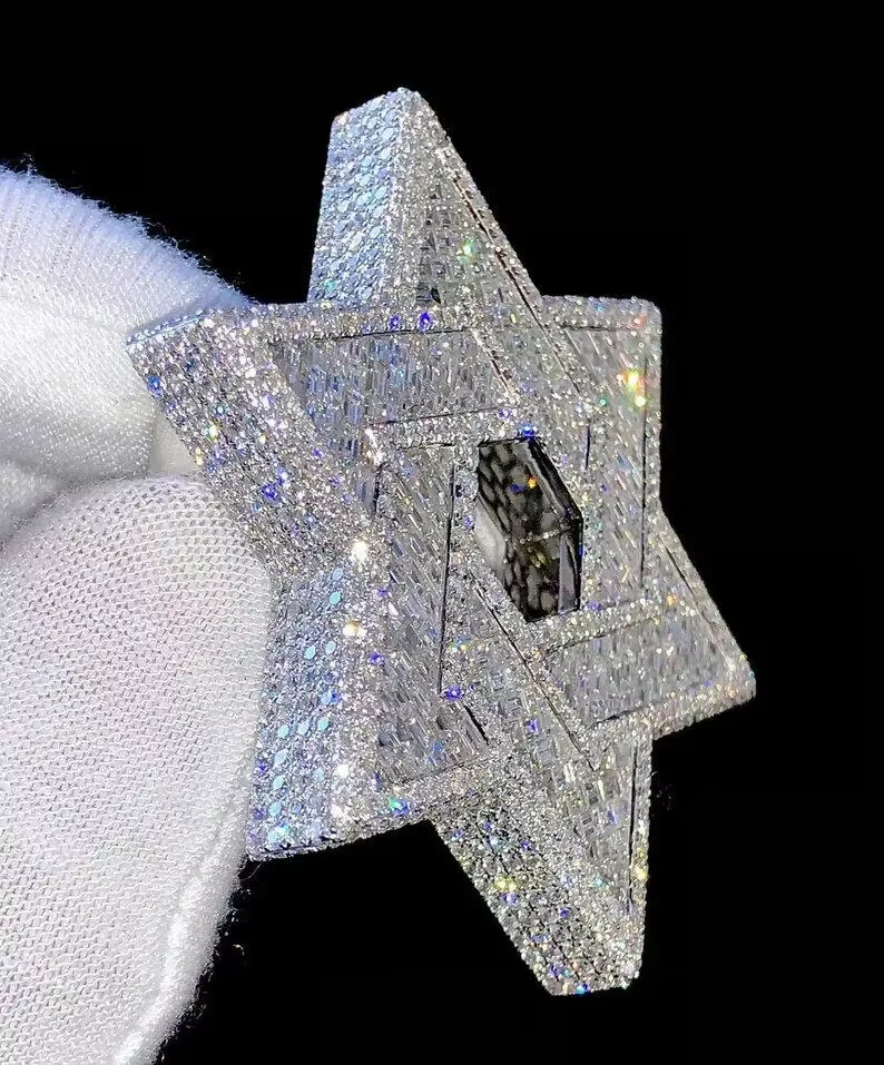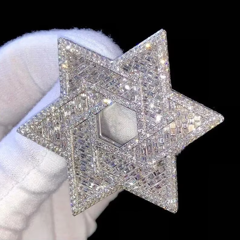 Colgante de Estrella Iced Out Chapado en Oro y Rodio con Engaste de Garra, Diseño Geométrico de Seis Puntas, Joyería Hip Hop para Hombres y Mujeres