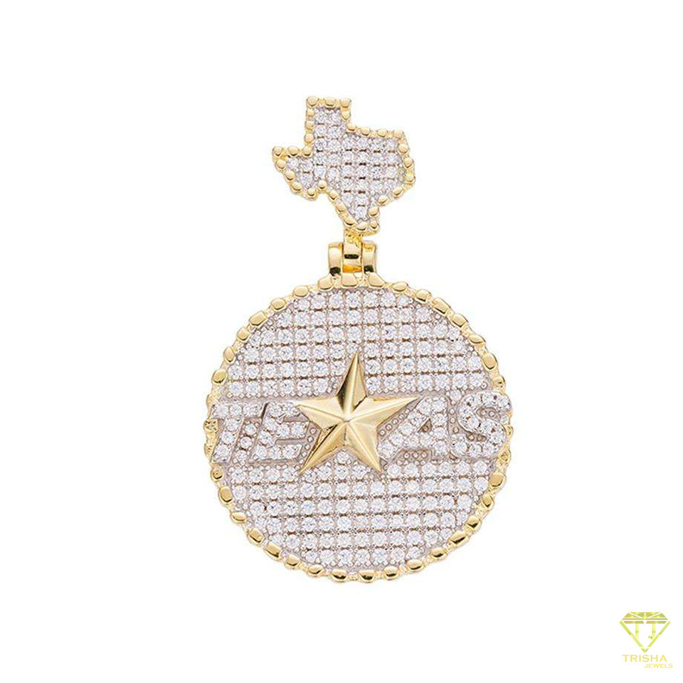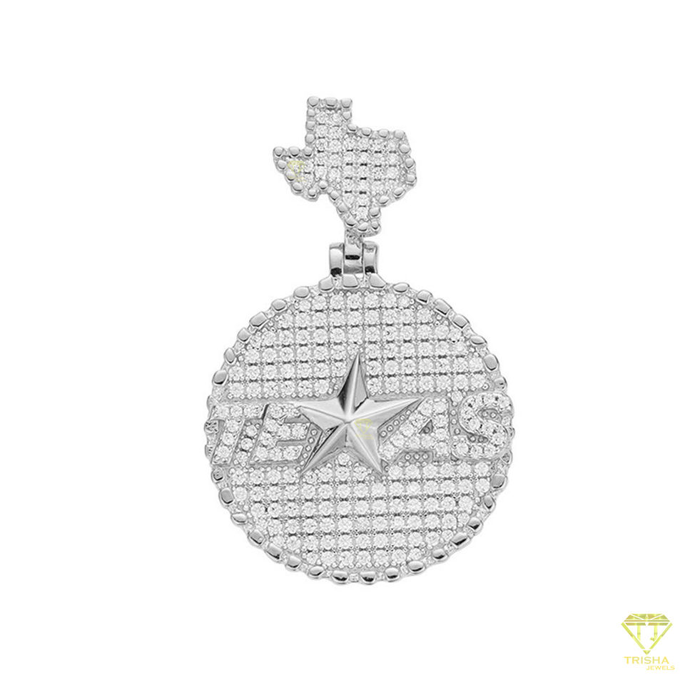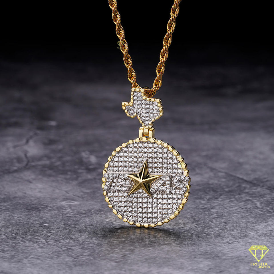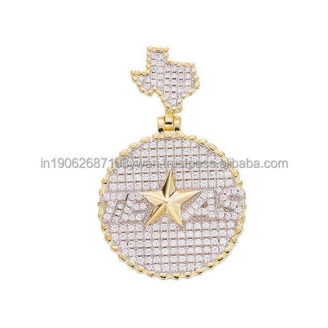 Colgante Iced Out Texas estilo Hip Hop estrella y mapa joyería Bling Texas Charm Hip Hop colgante 925 Plata Moissanite colgante