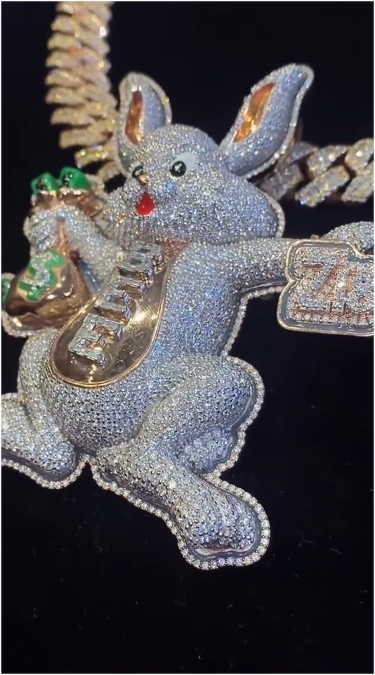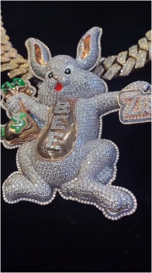 Colgante de conejo con incrustaciones de moissanita VVS, plata S925, estilo hip hop, personalizado, brillante, para hombre y mujer