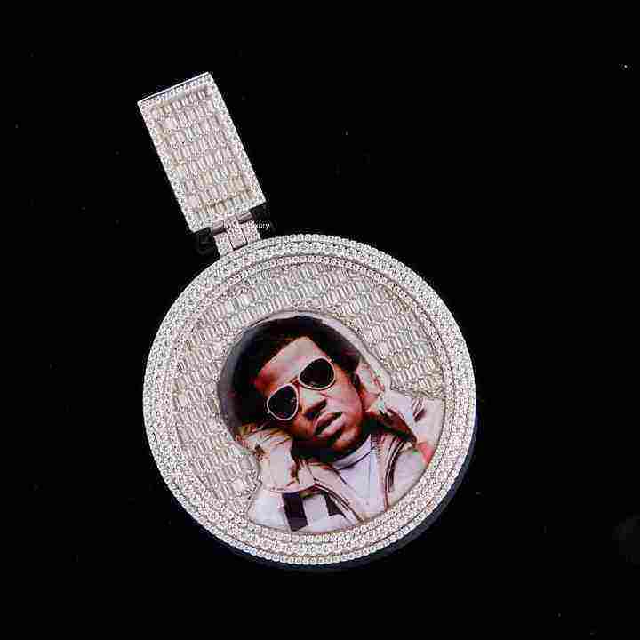 Iced Out VVS Moissanite oro blanco redondo y Baguette corte diamante Hip Hop joyería colgante para hombres 925 plata esterlina