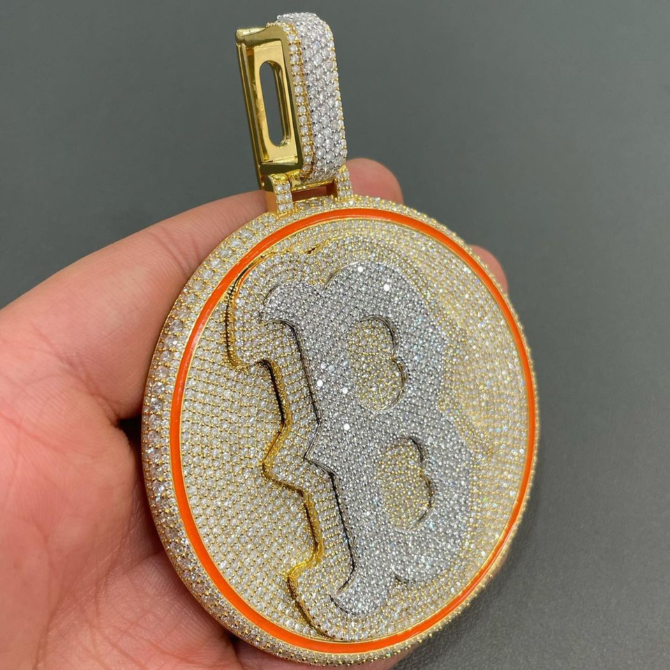 Iced Out VVS Moissanite oro amarillo colgante encantos corte redondo diamante colgante Hip Hop 925 plata esterlina