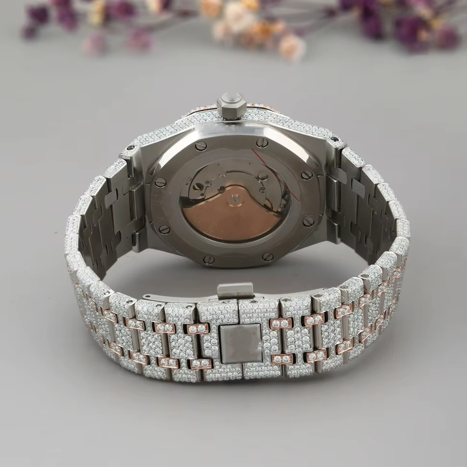 Reloj de Lujo Estilo Hip-Hop con Incrustaciones de Diamantes VVS Moissanite, Movimiento de Cuarzo, Cristal de Ventana con Certificado de Autenticidad, Correa de Cuero