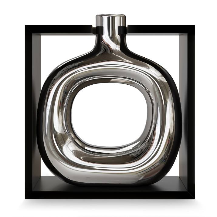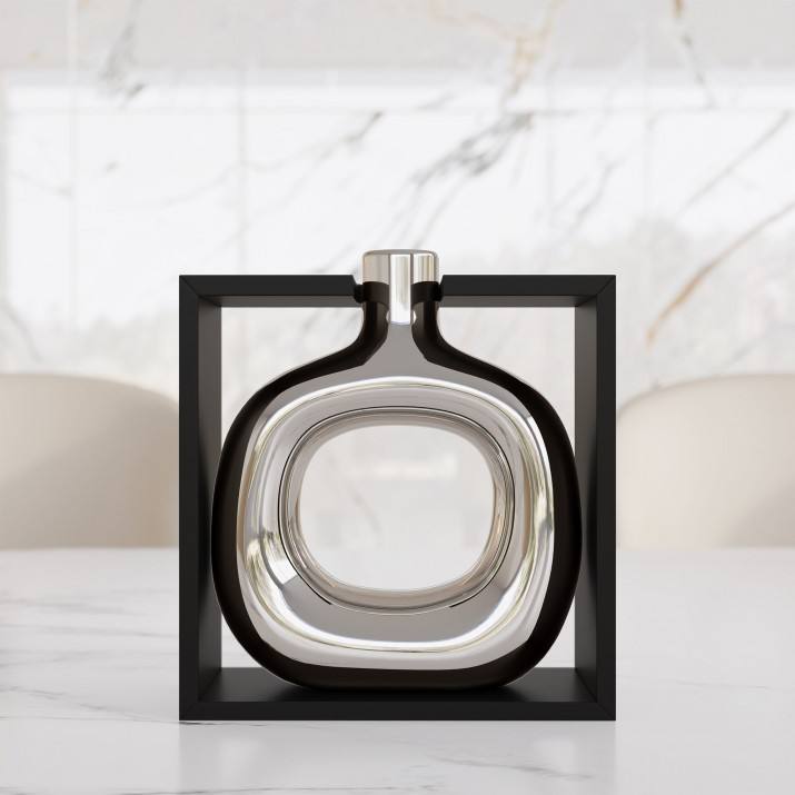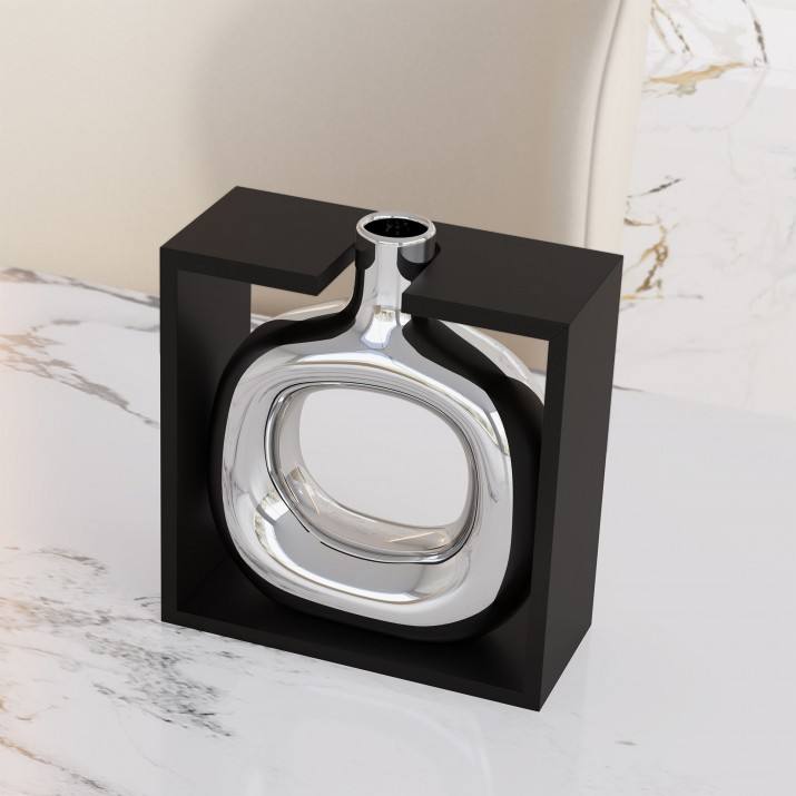 Jarrón de Cerámica Contemporáneo Icónico para Mesa, Color Plateado, Esmalte Transparente