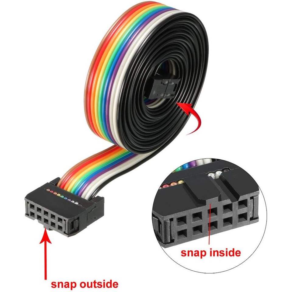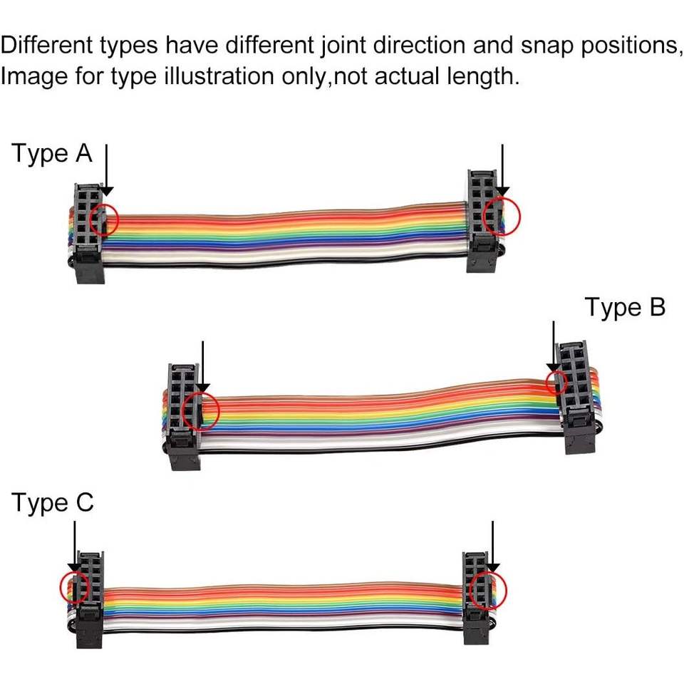 Cable Plano de PVC Idc Rainbow de 10 pines, 148 cm, Paso de 2,54 mm, Conector Tipo C