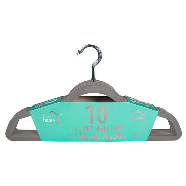 Colgador de terciopelo para el hogar Ideal 10PK gancho cromado gris 12 uds/cartón