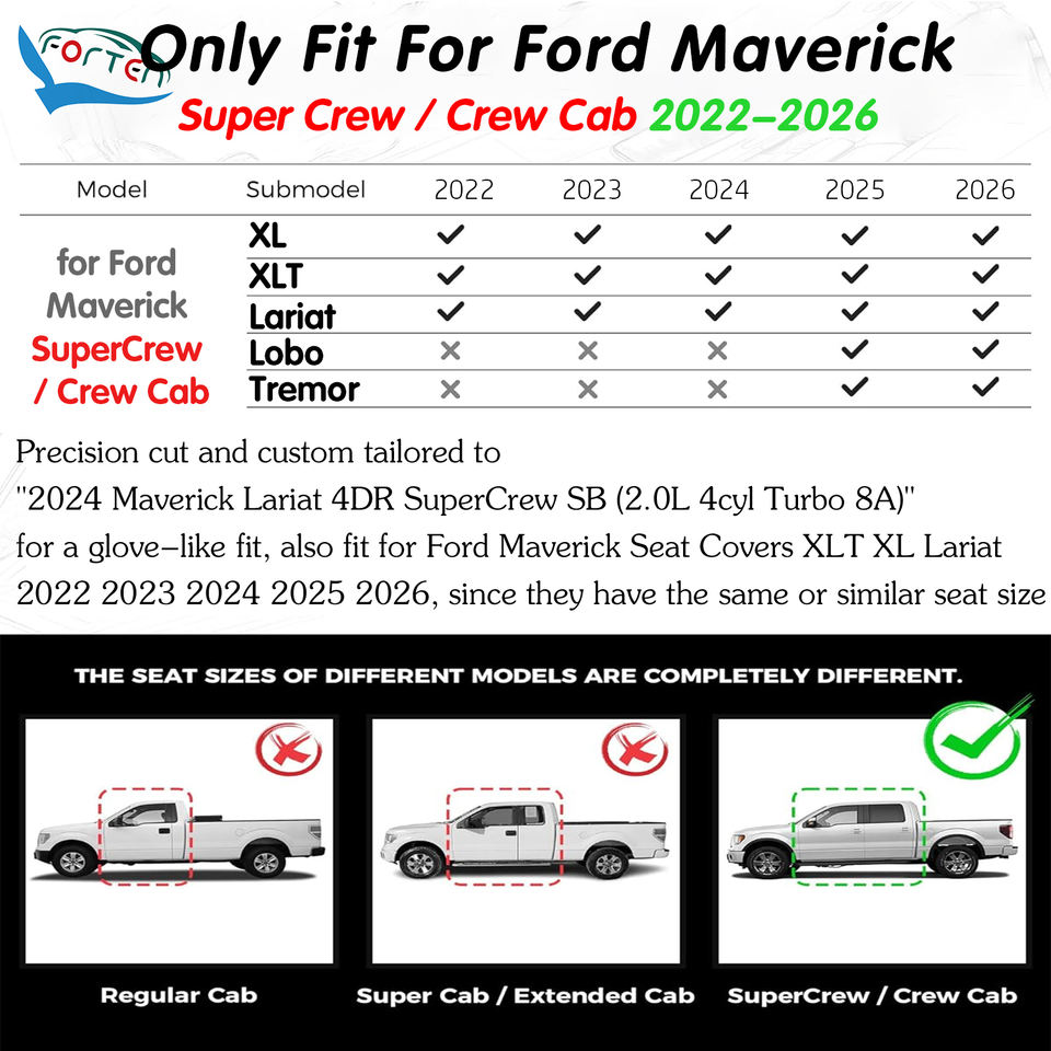 Compatibilidad:Compatible con Ford Maverick 2022-2026 Super Crew y Crew Cab