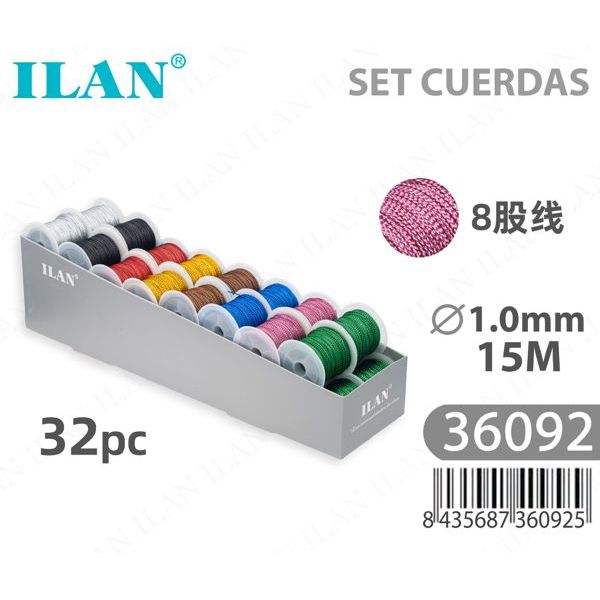 Hilo Metálico Multicolor de 8 Hilos, 1.0mm, 15m, Juego de 32 Piezas