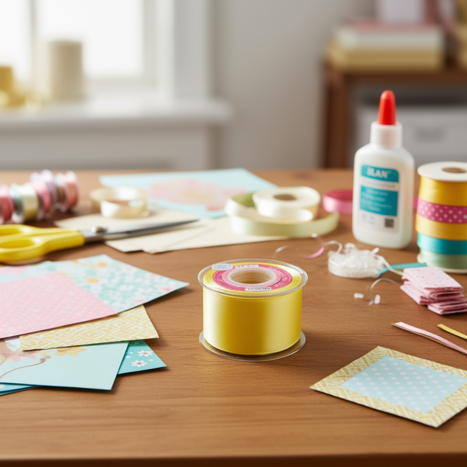 Cinta de Raso Il Satin de 5.0cm x 25Y, Color Amarillo Azufre D-41