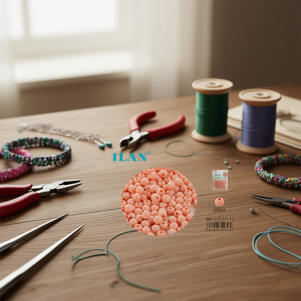 Abalorio Ilan de 6mm, Color Sólido, para la Fabricación de Joyería
