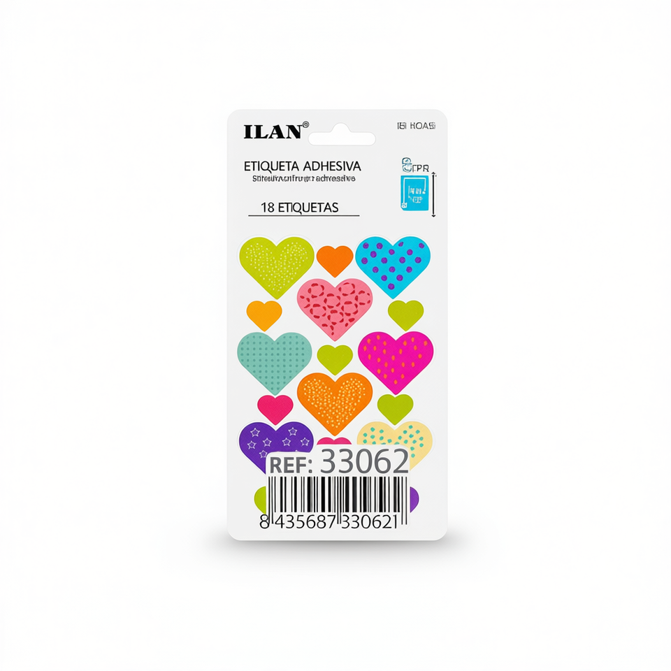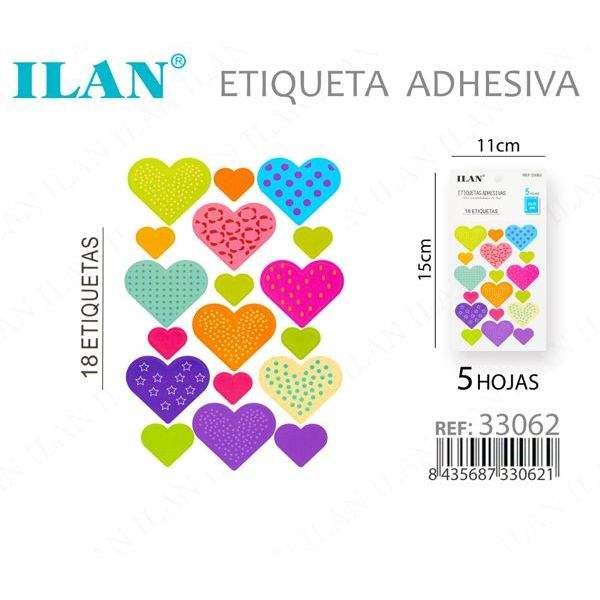 Etiqueta Adhesiva Ilan 18 Corazones 5 Hojas 11x15cm Coloridas Para Prendas