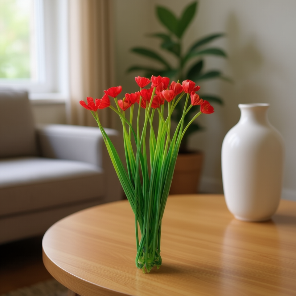 Flores Artificiales Ilan, 15 cm, 10 Piezas, Tulipanes Rojos, Ramo Decorativo