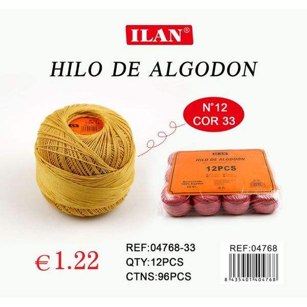 Hilo de Algodón Ilan N12 Cor 33, Hilo de Coser, Paquete de 12 Piezas