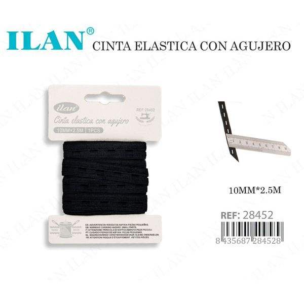 Cinta Elástica Rectangular Resistente Ilan con Ojales de 10 mm x 2,5 m para Uso en Prendas de Vestir