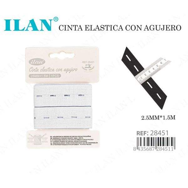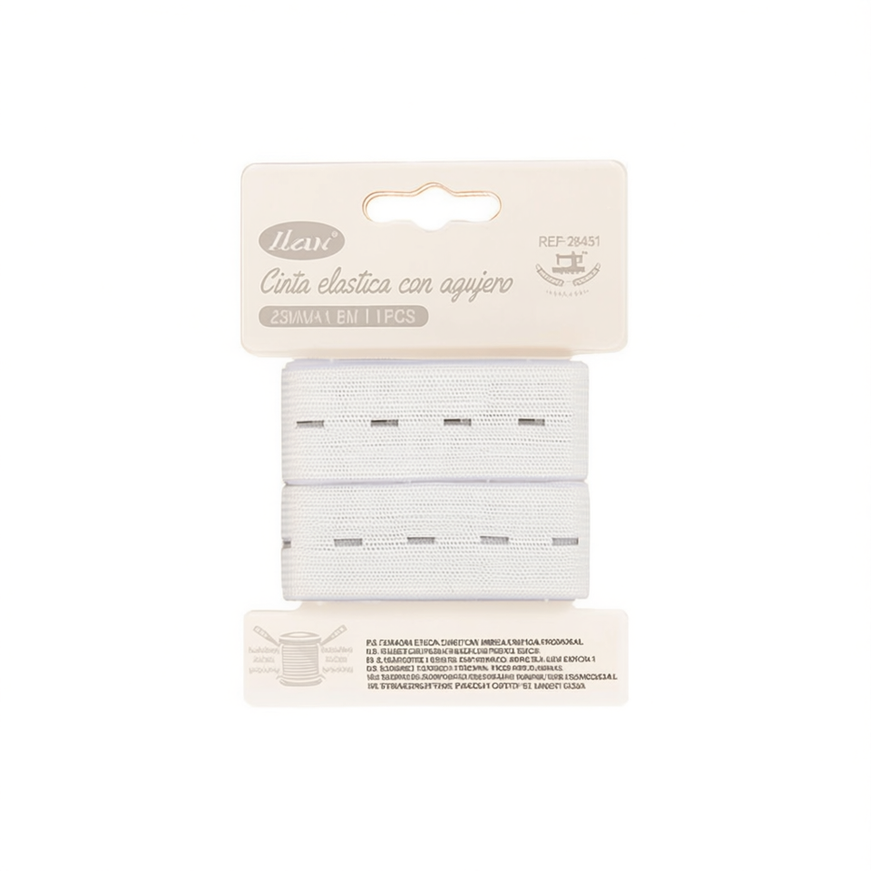 Cinta Elástica Ilan con Ojales de 2.5 mm x 1.5 m, Blanca, para Uso en Prendas de Vestir
