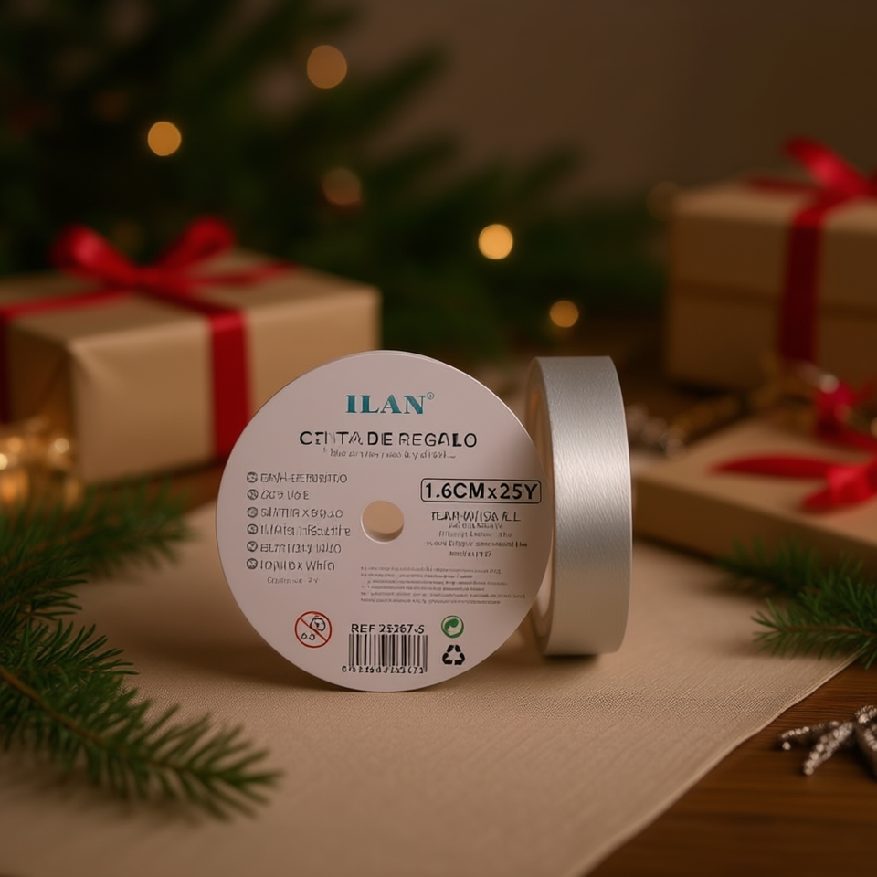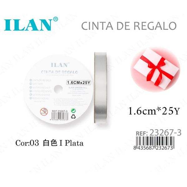 Cinta de Regalo Ilan de 1.6 cm x 25 yardas, Plateada y Blanca, para Empaque