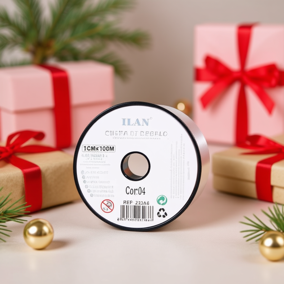 Cinta de regalo Ilan de 1 cm x 100 m, satén blanco para empaquetado