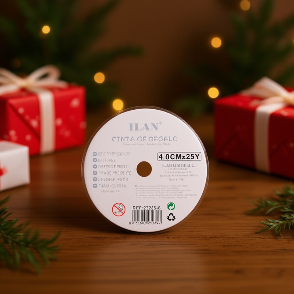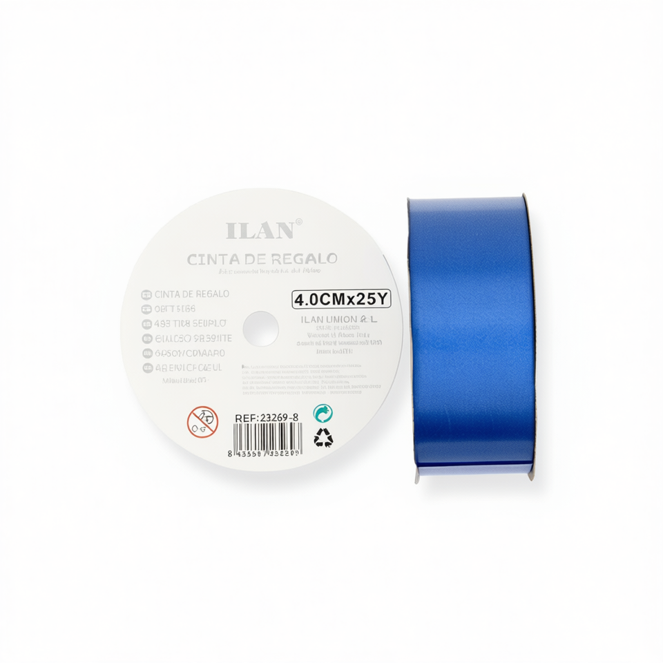 Cinta de Regalo Ilan de 4.0 cm x 25 yardas, Azul, para Envolver Regalos