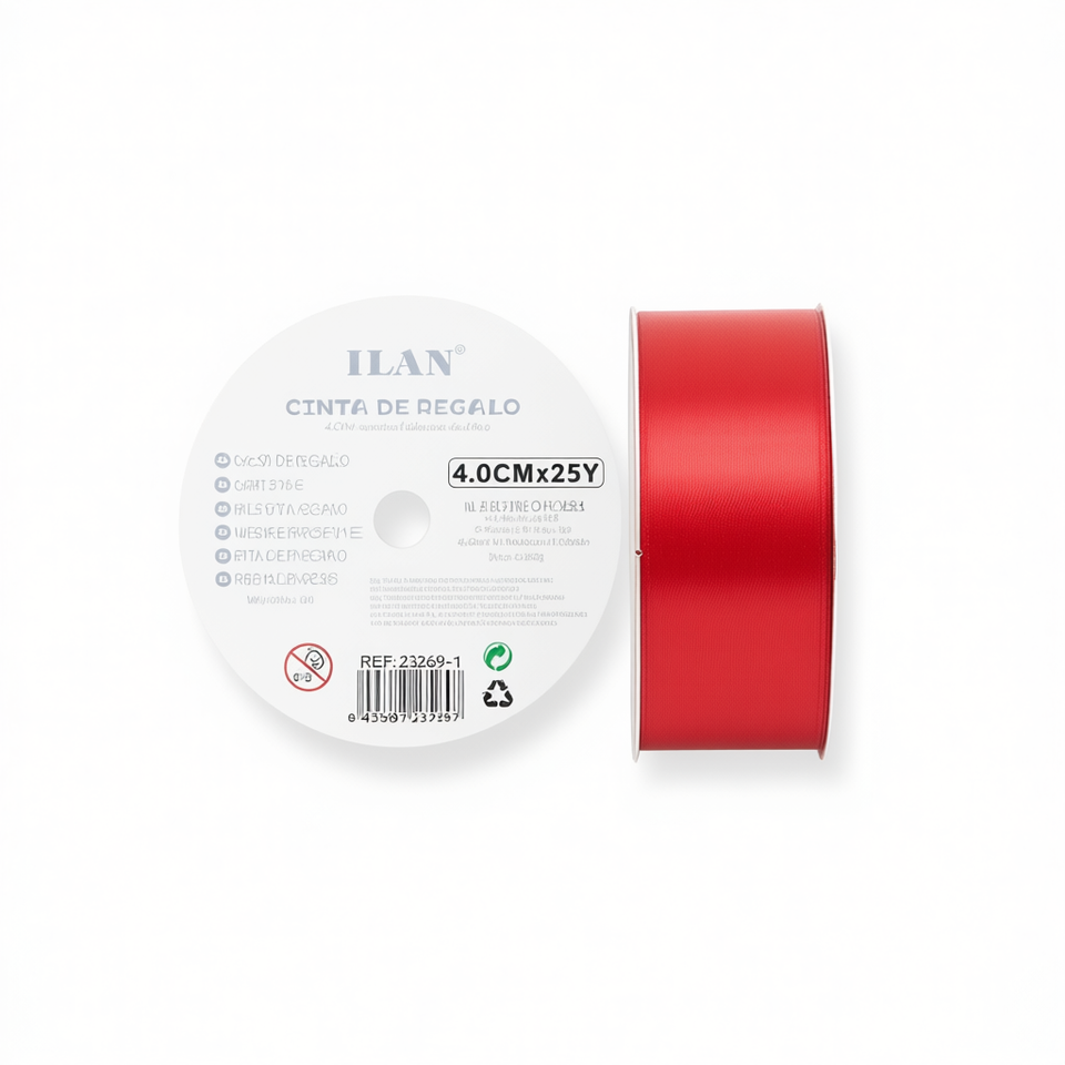 Cinta de Regalo Ilan de 4.0cm x 25 yardas, Color Rojo, para Envolver Regalos