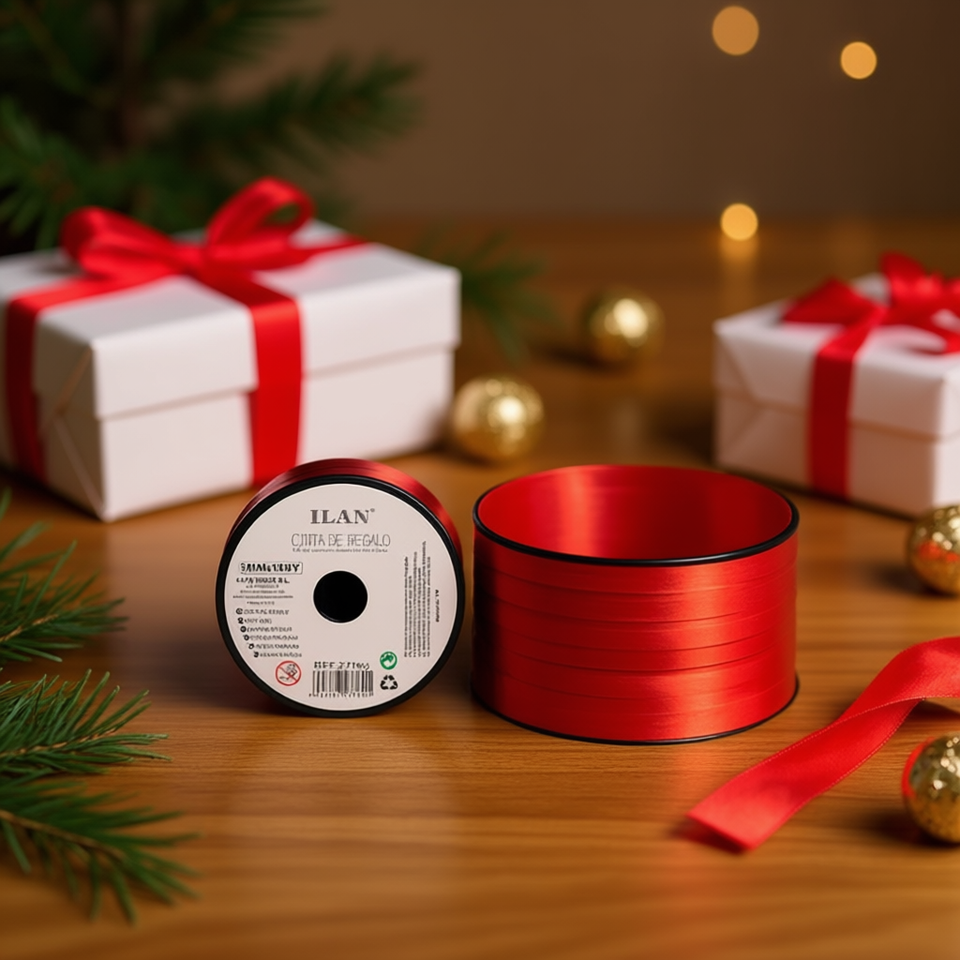 Cinta de Regalo Ilan de 5 mm x 100 yardas, Roja Metalizada, para Envolver
