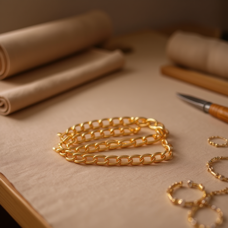 Cadena Metálica Ilan de 1 Metro, Color Oro Claro, Adornos