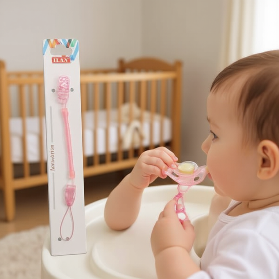 Cordón para chupete Ilan, modelo Spring, color rosa, 20 cm, accesorio para alimentación de bebés