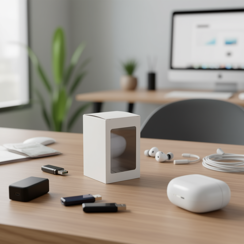 Caja de Papel Ilan 10x10x15 Cm con Ventana para Almacenamiento de Electrónicos
