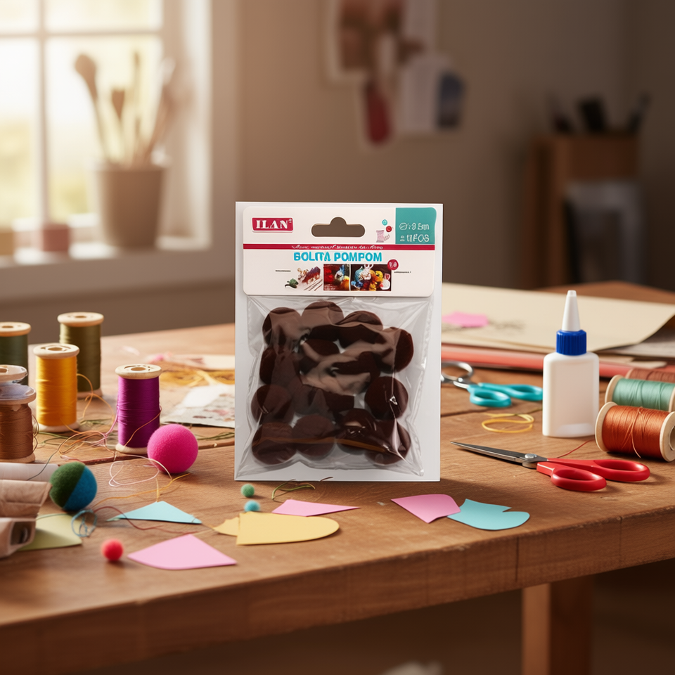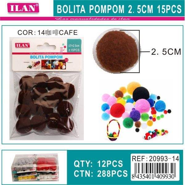 Bola de Pompón Ilan de 2.5 cm, Color Café, Decoraciones para Manualidades y Proyectos DIY