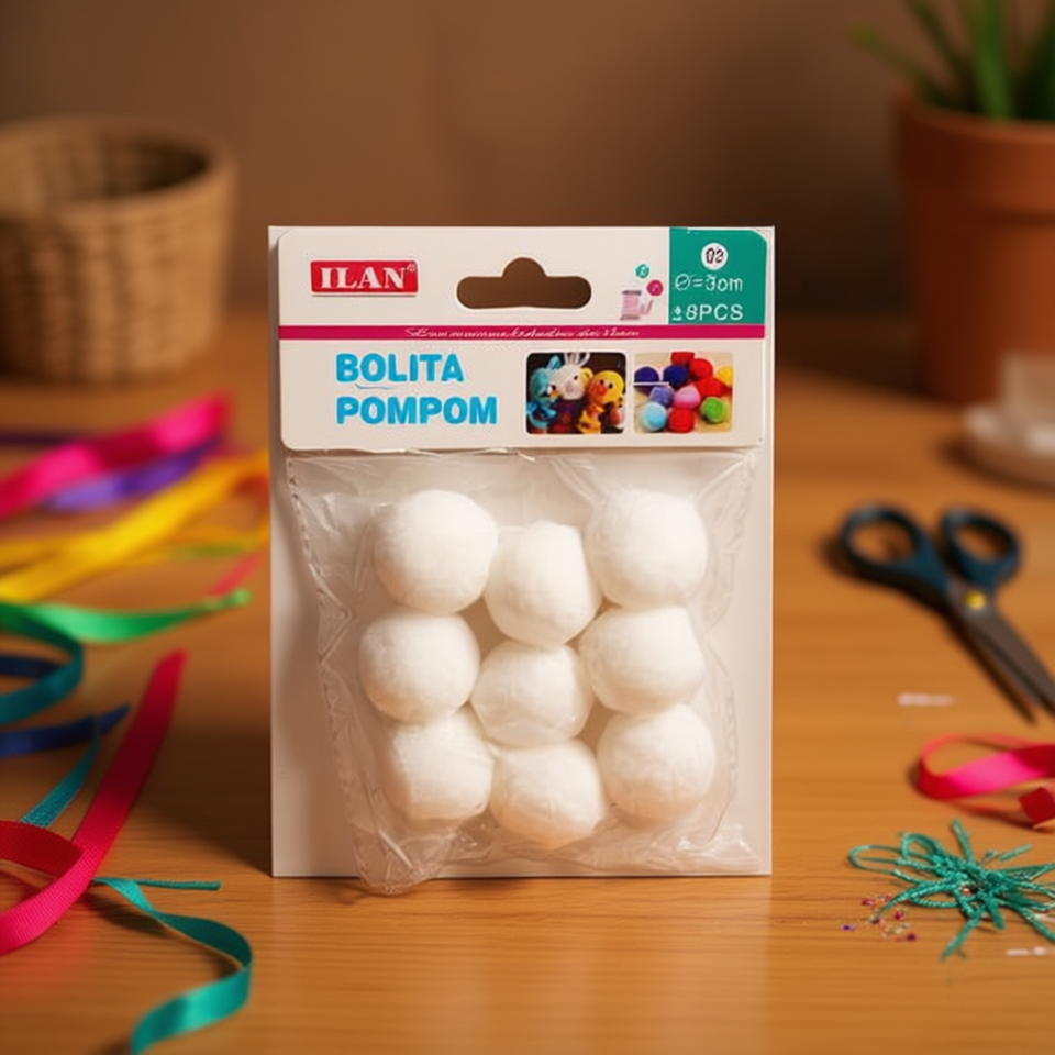 Bola de Pompón Ilan de 3.0 cm, Blanca, para Decoraciones y Proyectos de Manualidades