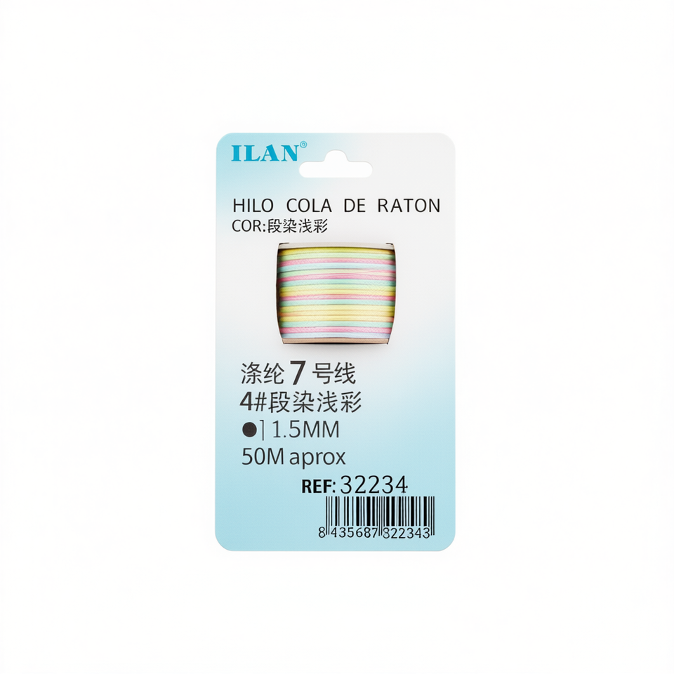 Cordón de Cola de Rata Ilan de 1.5 mm, 50 m, Teñido en Colores Pastel para la Fabricación de Joyas