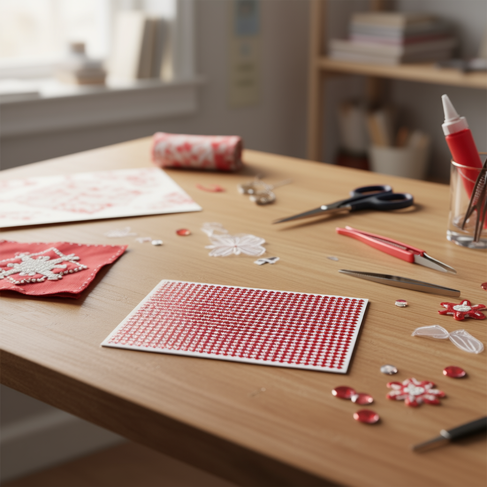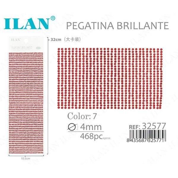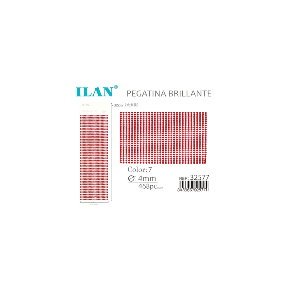 Pegatinas de Diamantes de Imitación Ilan, Rojas Brillantes de 4 mm, 468 Piezas, Tarjeta Grande
