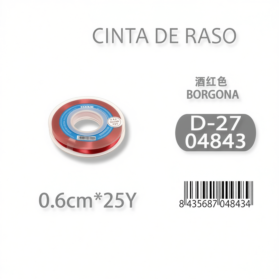 Cinta de Raso Ilan de 0.6cm, 25 Yardas, Color Borgoña D-27