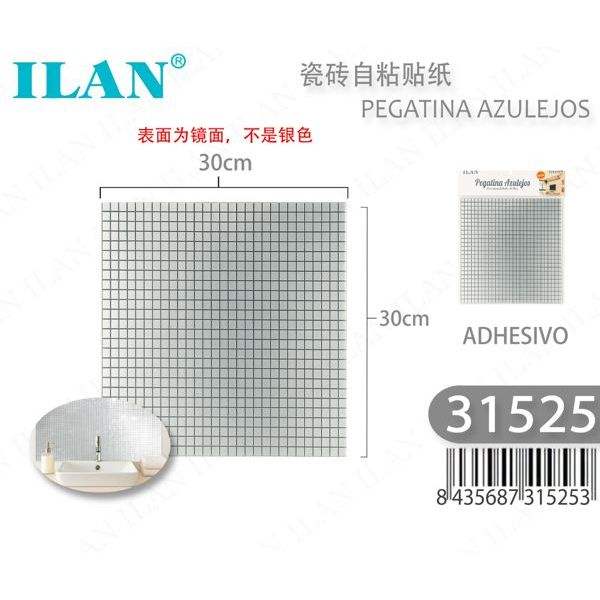 Pegatina autoadhesiva para azulejos Ilan de 30x30cm con superficie de espejo para decoración de paredes