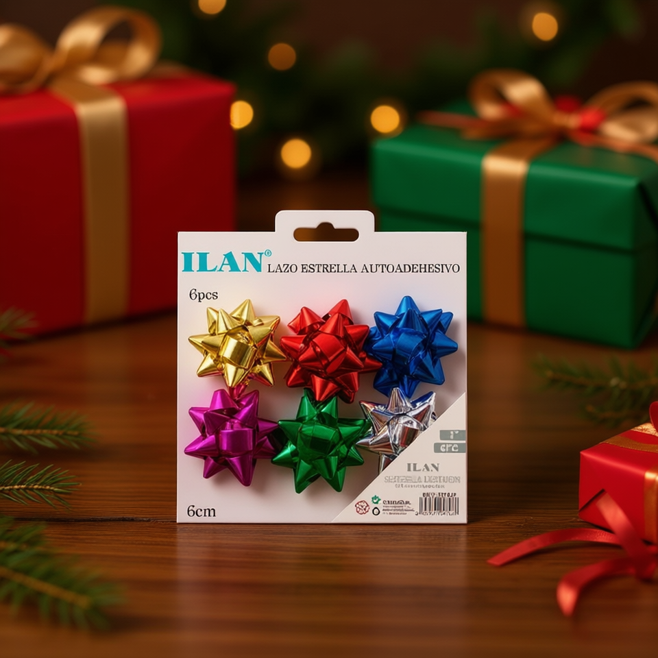 Cinta Adhesiva Ilan Star de 5cm para Decoración de Regalos, 6 Piezas