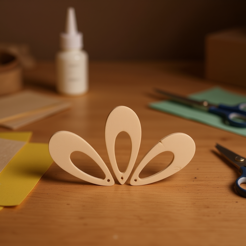 Accesorio de madera Ilan en forma de gota de 60x30mm, 3 piezas, para proyectos de manualidades