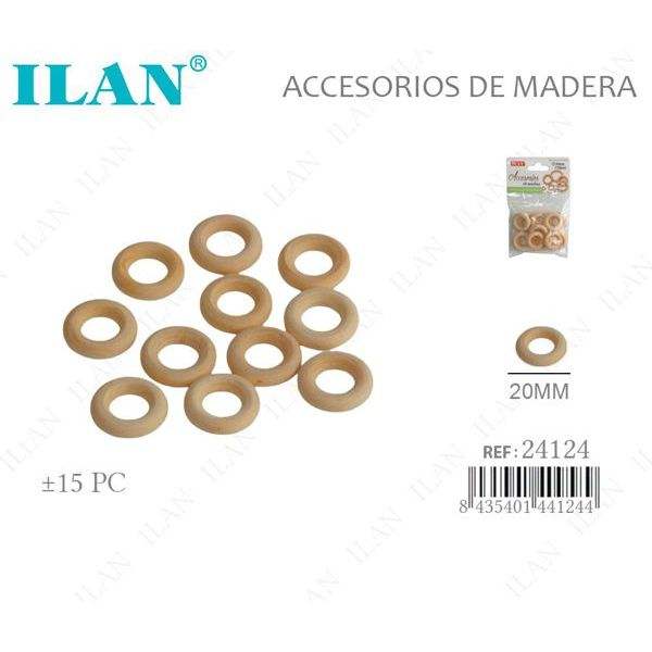 Anillos de Madera Ilan de 20 mm, 15 Piezas, Accesorios para Manualidades